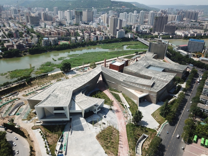 該工程由建筑大師崔愷院士主持設(shè)計(jì),充分考慮舊建筑價(jià)值,保留城市記憶,因地制宜,采用了往返曲折的布局,融合了寶雞周風(fēng)秦韻的文化淵源,形成錯(cuò)落有致、曲折綿延的建筑群落,猶如巨龍般昂首舒尾,欲飛沖天,彰顯出象征寶雞城市飛躍發(fā)展的偉岸形象。其獨(dú)特的現(xiàn)代簡(jiǎn)約、環(huán)保、人性化設(shè)計(jì)理念和內(nèi)涵豐富的造型為這座文化藝術(shù)殿堂增加了靈動(dòng)和魅力。