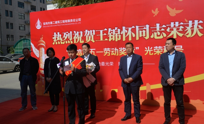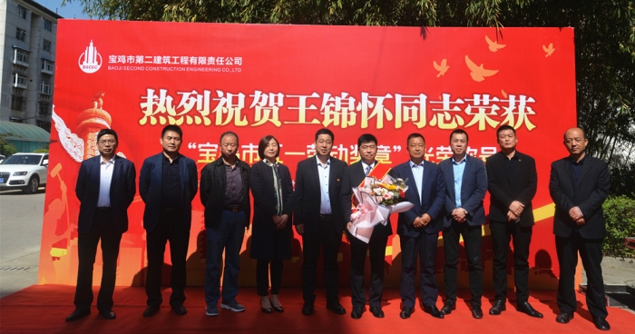 4月27日上午,寶雞市慶祝“五一”國際勞動節(jié)大會在萬福酒店召開,公司第三十四項目部項目經(jīng)理王錦懷同志榮獲寶雞市“五一勞動獎?wù)隆惫鈽s稱號。公司在總部辦公樓前舉行了歡迎儀式,公司董事長胥立、總經(jīng)理張小揚、黨委書記景旭東、黨委副書記王紅衛(wèi)、工會主席王建成等領(lǐng)導(dǎo)出席,總部全體人員、第三十四項目部員工代表參加。
