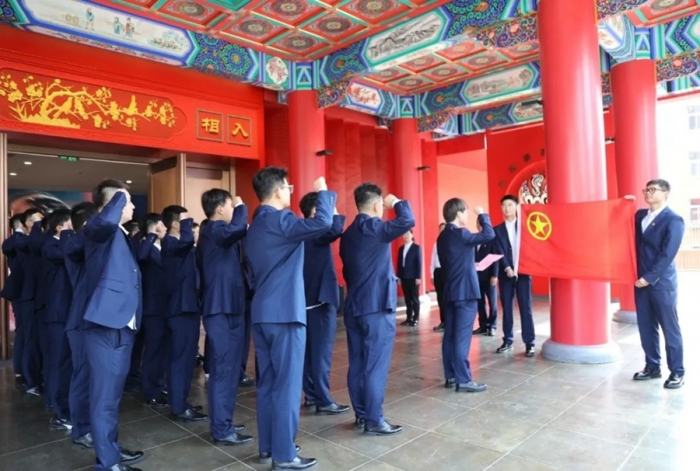 天水中南錦時住宅項目(安置區(qū)北區(qū))項目部團(tuán)員青年達(dá)云飛帶領(lǐng)大家重溫入團(tuán)誓詞。鏗鏘有力的誓詞回蕩在現(xiàn)場,激勵著每一位團(tuán)員青年時刻銘記團(tuán)員使命,不忘初心,砥礪前行。